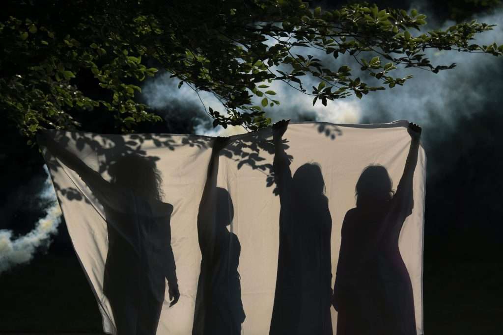 Viola arriva all’alba racconta di un lutto improvviso che segna la vita di quattro donne, Albina, Giuseppina, Amelia e Teresa, rivelando fragilità e assenze in un universo femminile complesso, in un movimento che risale dal buio della notte alle prime luci dell’alba. Uno spettacolo scandito dal fluire dell’acqua, che esplora le molte sfumature della femminilità e la ricerca di sé nel contemporaneo.
